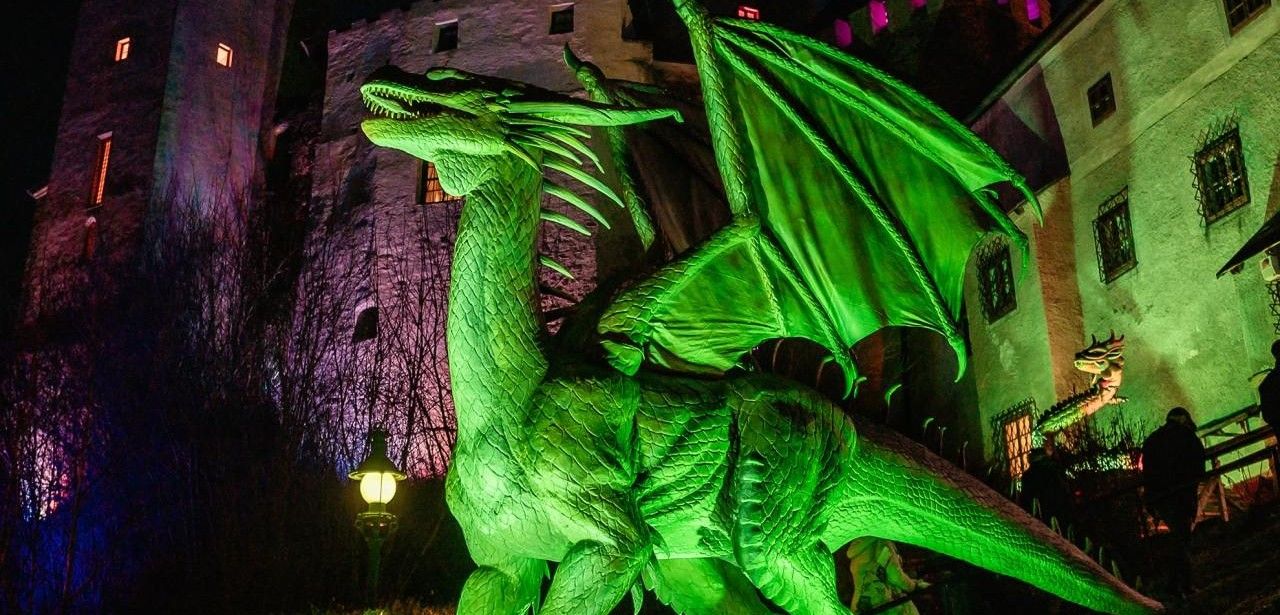 Über zwanzig animatronische Drachen erwecken Fantasie in winterlicher Freiluftinszenierung